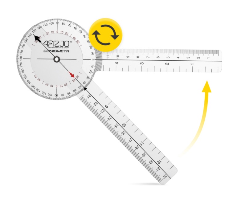 którzy na co dzień oceniają mobilność pacjentów. Umożliwia on dokładny pomiar zakresu ruchomości stawów,
